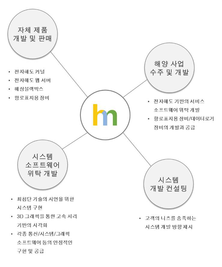 또한, 마이크로프로세서 응용 하드웨어 장비 개발 분야로 확장하여 항로표지용 장비와 기상신호 데이터 로거장비의 개발 및 공급, 외부 사업 및 독자 제품의 개발에 박차를 가하고 있습니다.