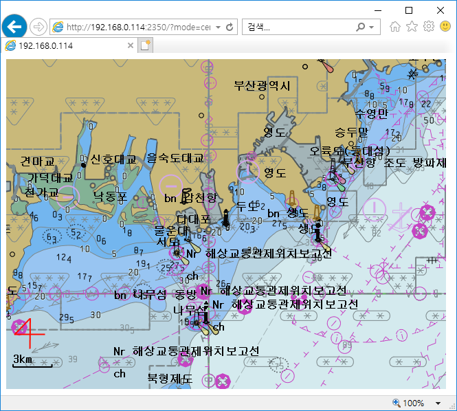 with open layers. It is automatically registered as a windows service at the time of software installation, and comes with administrator software to set the output format of the electronic navigation chart.